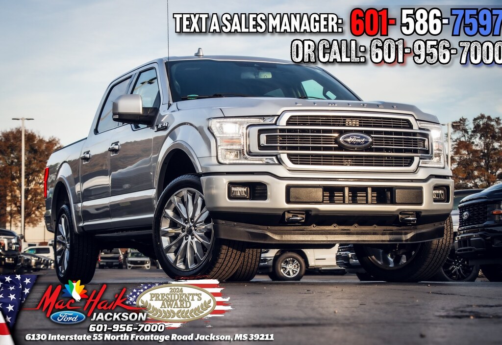 Ingot Silver 2018 Ford F-150 Limited 4WD 10-Speed Automatic 3.5L V6 EcoBoost F-150 Limited, 4D SuperCrew, 3.5L V6 EcoBoost, 4WD, 10 Speakers, 22" Polished Aluminum Wheels, 3.31 Axle Ratio, 4-Wheel Disc Brakes, AppLink/Apple CarPlay and Android Auto, Auto High-beam Headlights, Automatic temperature control, Brake assist, Class IV Trailer Hitch Receiver, Electronic Stability Control, Equipment Group 900A Base, Extended Range 36 Gallon Fuel Tank, Exterior Parking Camera Rear, Fully automatic headlights, Garage door transmitter, GVWR: 6,750 lbs Payload Package, Heated front seats, Heated rear seats, Higher-Capacity Radiator, Higher-Power Cooling Fans, Memory seat, Navigation System, Pedal memory, Power moonroof, Pro Trailer Backup Assist, Radio: B&O Play Premium Audio System, Speed-sensing steering, Spray-In Bedliner (Pre-Installed), Steering wheel mounted audio controls, SYNC 3, Tailgate Step w/Tailgate Lift Assist, Trailer Tow Package, Turn signal indicator mirrors, Upgraded Front Stabilizer Bar, Ventilated front seats, Voice-Activated Touchscreen Navigation System.