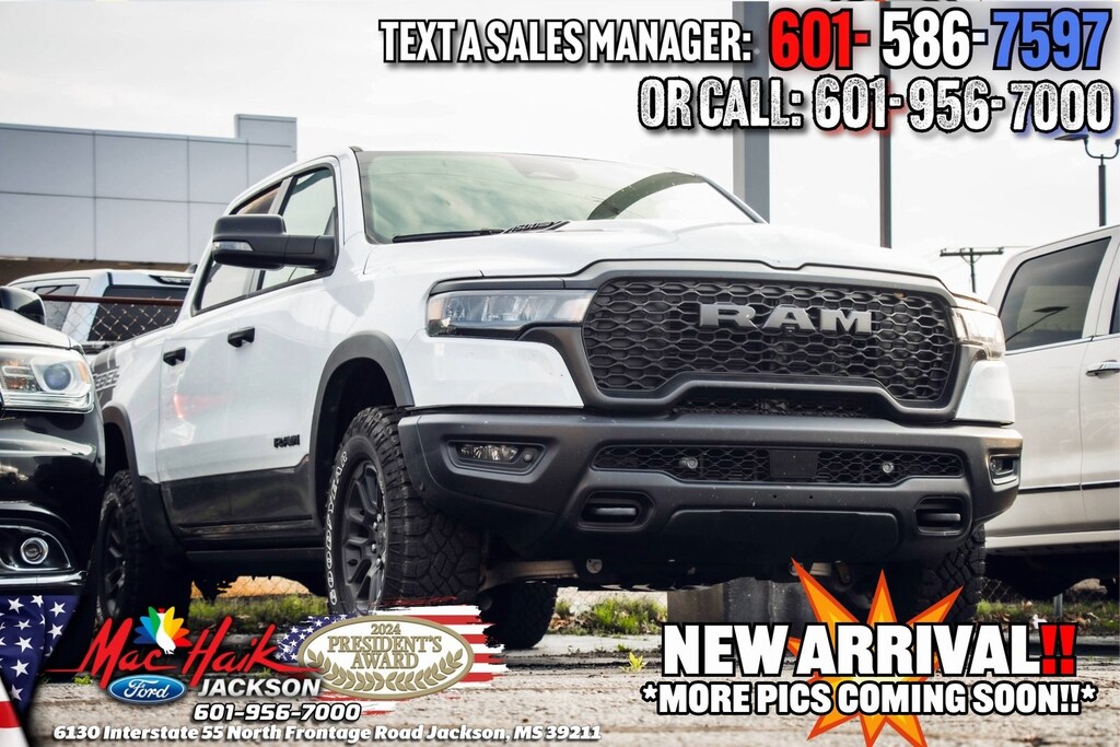 Bright White Clearcoat 2025 Ram 1500 Rebel 4WD 8-Speed Automatic 3.0L I6 1500 Rebel, 4D Crew Cab, 3.0L I6, 8-Speed Automatic, 4WD, Bright White Clearcoat, Red/Black w/Lux Leather Trimmed Bucket Seats Or Cloth/Vinyl Bucket Seats.