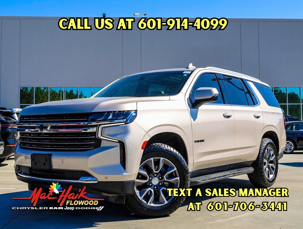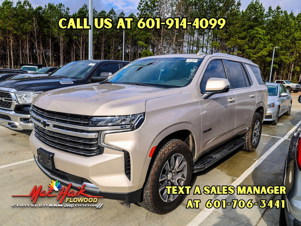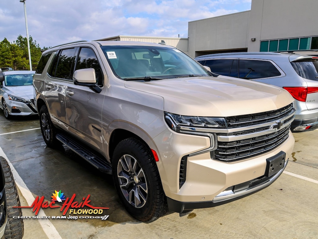 Empire Beige Metallic 2021 Chevrolet Tahoe LT RWD 10-Speed Automatic with Overdrive EcoTec3 5.3L V8 Gideon/Very Dark Atmosphere Leather, 1st & 2nd Row Color-Keyed Carpeted Floor Mats, 2 USB Data Ports, Auto-Dimming Inside Rear-View Mirror, Bright Front & Rear Door Sill Plates, Color-Keyed Carpeting Floor Covering, Driver & Front Outboard Passenger Airbags, Driver Alert Package, Dual-Pane Power Panoramic Sunroof, Floor Console w/Storage Area, Front & Rear Park Assist, Hands-Free Rear Power Programmable Liftgate, HD Radio, Infotainment Display, Lane Change Alert w/Side Blind Zone Alert, Lane Keep Assist w/Lane Departure Warning, Leather-Wrapped Steering Wheel, LED Daytime Running Lamps, LT Signature Plus Package, Luxury Package, Memory Settings for Driver, Preferred Equipment Group 1LT, Radio: Chevrolet Infotainment 3 Premium System, Rear Cross Traffic Alert, Rear Media & Nav Package, Rear Seat Media System, Remote Start, SiriusXM Radio w/360L, Universal Home Remote.