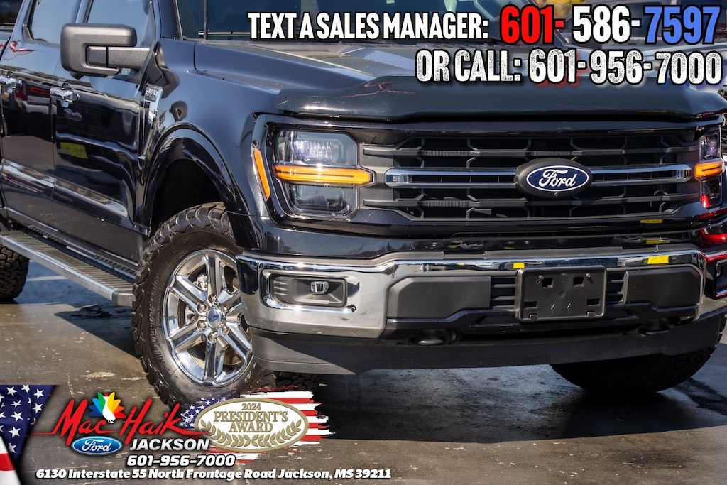Black Metallic 2024 Ford F-150 XLT 4WD 10-Speed Automatic 5.0L V8 F-150 XLT, 4D SuperCrew, 5.0L V8, 4WD, 4x4 FX4 Off-Road Bodyside Decal, AM/FM radio: SiriusXM with 360L, Auto High-beam Headlights, Automatic temperature control, Cloth 40/Console/40 Smoked Truffle Front Seats, Console Worksurface, Electronic Locking w/3.31 Axle Ratio, Electronic Stability Control, Equipment Group 301A Standard, Front Center Armrest w/Storage, Fully automatic headlights, FX4 Off-Road Package, GVWR: 7,100 lbs Payload Package, Hill Descent Control, Mobile Office Package, Monotube Rear Shocks, Off-Road Tuned Front Shock Absorbers, Partitioned Lockable Rear Storage, Rock Crawl Mode, SYNC 4 w/Enhanced Voice Recognition, Tough Bed Spray-In Bedliner, Tray Style Floor Liner, Wheels: 18" Chrome-Like PVD.