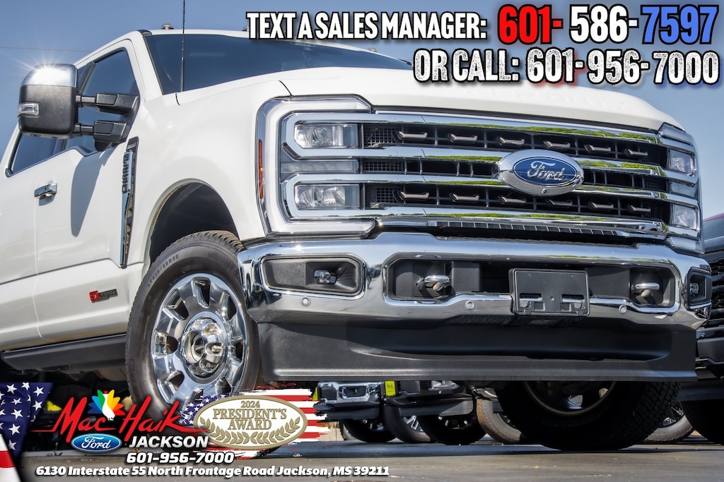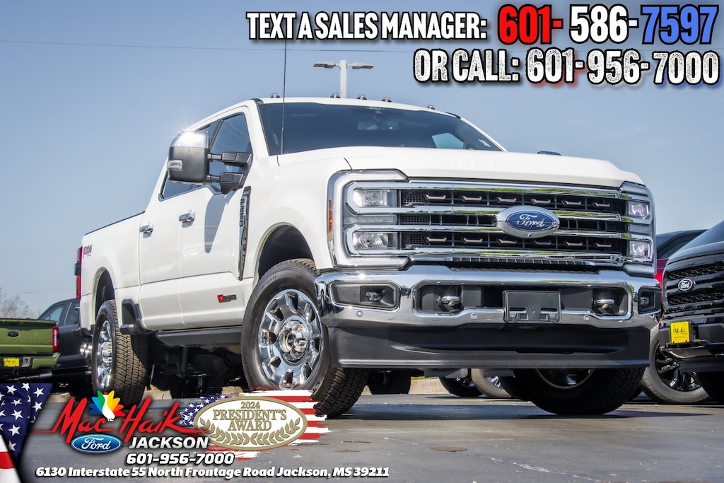 Star White Metallic Tri-Coat 2024 Ford F-250SD King Ranch 4WD 10-Speed Automatic 6.7L High Output Power Stroke V8 Diesel F-250 SuperDuty King Ranch, 4D Crew Cab, 6.7L High Output Power Stroke V8 Diesel, 10-Speed Automatic, Star White Metallic Tri-Coat, Java Leather, 5th Wheel/Gooseneck Hitch Prep Package, Chrome Door Handles, Chrome Exhaust Tip, Chrome Package, F-250 >10K GVWR Package, FX4 Off-Road Package, High Capacity 11.6" Axle Upgrade Package, Hill Descent Control, Navigation system: Connected Navigation (includes complimentary 1-year trial), Off-Road Specifically Tuned Shock Absorbers, Radio: B&O Unleashed Sound System by Bang & Olufsen, SiriusXM Radio w/360L, SYNC 4 w/Enhanced Voice Recognition, Tough Bed Spray-In Bedliner, Twin Panel Power Moonroof, Unique Chrome Mirror Caps, Unique FX4 Off-Road Box Decal, Wheels: 20" Chrome PVD Aluminum.