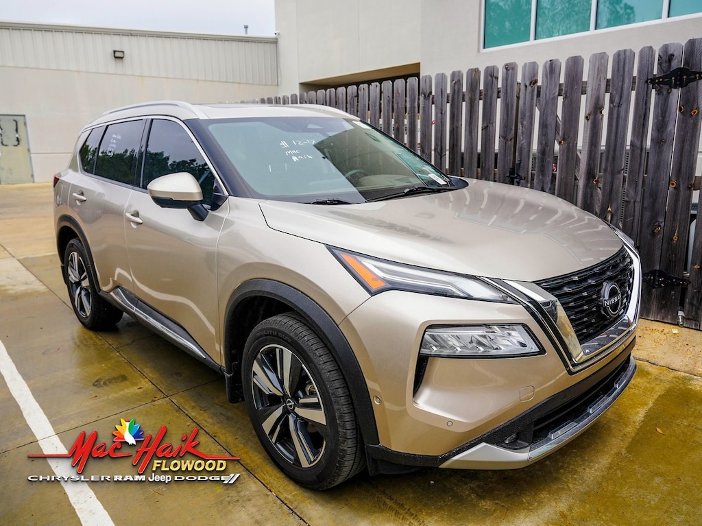 Champagne Silver Metallic 2022 Nissan Rogue Platinum AWD CVT with Xtronic 1.5L I3 Turbocharged DOHC 12V LEV3-ULEV50 201hp AWD, Head-Up Display Package, Heads-Up Display.