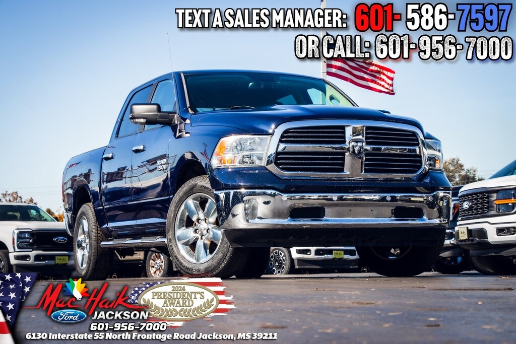 True Blue Pearlcoat 2017 Ram 1500 Big Horn 4WD 8-Speed Automatic 3.6L V6 24V VVT New Tires!, New Brakes!, 1500 Big Horn, 4D Crew Cab, 3.6L V6 24V VVT, 8-Speed Automatic, 4WD, True Blue Pearlcoat, Diesel Gray/Black Cloth, Air Conditioning ATC w/Dual Zone Control, Auto-Dimming Exterior Mirrors, Auto-Dimming Rear-View Mirror, Big Horn Badge, Big Horn Regional Package, Bright/Bright Billets Grille, Class IV Receiver Hitch, Electric Shift-On-Demand Transfer Case, Electroluminescent Instrument Cluster, Exterior Mirrors Courtesy Lamps, Exterior Mirrors w/Supplemental Signals, Fog Lamps, Glove Box Lamp, Heated Front Seats, Heated Seats & Wheel Group (DISC), Heated Steering Wheel, Leather Wrapped Steering Wheel, LED Bed Lighting, Overhead Console w/Garage Door Opener, ParkSense Front/Rear Park Assist System, ParkView Rear Back-Up Camera, Power Heated Fold-Away Mirrors, Power-Folding Mirrors, Premium Cloth 40/20/40 Bench Seat, Quick Order Package 22S Big Horn, Radio: Uconnect 3C w/8.4" Display, Rear Dome w/On/Off Switch Lamp, Remote Start System, Security Alarm, Steering Wheel Mounted Audio Controls, Sun Visors w/Illuminated Vanity Mirrors, Underhood Lamp, Wheels: 20" x 8" Aluminum Chrome Clad.