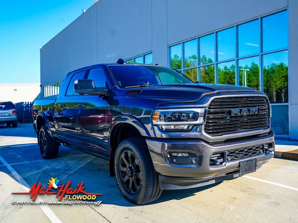 Granite Crystal Metallic Clearcoat 2022 Ram 2500 Laramie 4WD 6-Speed Automatic Cummins 6.7L I6 Turbodiesel Local Trade, 17 Speaker harman kardon Premium Sound, Auto High Beam Headlamp Control, Black Exterior Mirrors, Black Exterior Truck Badging, Black Headlamp Bezels, Black Interior Accents, Black RAM Head Tailgate Badge, Black Tail Lamp Bezels, Black Wheel Center Hub, Body Color Door Handles, Body Color Grille Surround, Center Stop Lamp w/Cargo View Camera, Chrome Exterior Mirrors, Exterior Mirrors Courtesy Lamps, Exterior Mirrors w/Heating Element, Exterior Mirrors w/Memory, Exterior Mirrors w/Supplemental Signals, Foam Bottle Insert (Door Trim Panel), Gloss Black Grille Billets/Accents, Heated Second Row Seats, Laramie Level B Equipment Group (DISC), Mirror Running Lights, Mirror-Mounted Aux Reverse Lamps, Night Edition, Painted Front Bumper, Painted Rear Bumper, Power Adjustable Convex Aux Mirrors, Power Adjustable Pedals w/Memory, Power-Folding Mirrors, Pwr Convenience Black Tow Mirrors w/Spotter & Memory, Pwr Convenience Chrome Tow Mirrors w/Spotter & Memory, Quick Order Package 2HH Laramie, Radio: Uconnect 5 Nav w/8.4" Display, Radio/Driver Seat/Mirrors/Pedals Memory, Rain Sensitive Windshield Wipers, Remote Tailgate Release, Surround View Camera System, Towing Technology Group B, Trailer Reverse Guidance, Trailer Tow Mirrors, Wheels: 20" x 8.0" Black Painted Aluminum.