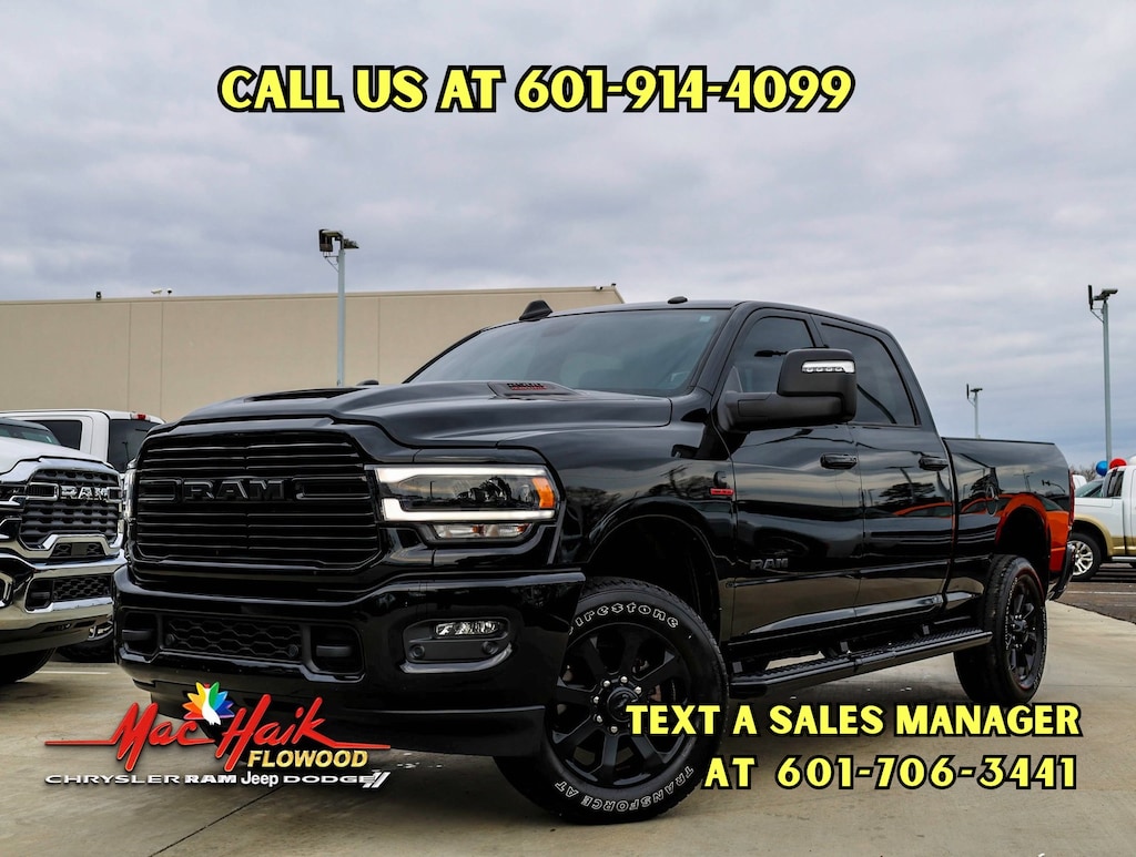 Diamond Black Crystal Pearlcoat 2024 Ram 2500 Laramie 4WD 6-Speed Automatic Cummins 6.7L I6 Turbodiesel Local Trade, 12" Touchscreen Display, 2nd Row In Floor Storage Bins, 4G LTE Wi-Fi Hot Spot, Alexa Built-In, Apple CarPlay, Auto Adjust In Reverse Exterior Mirrors, Auto Dim Exterior Mirror, Auto High Beam Headlamp Control, Auto Power-Folding Mirrors, Auto-Dimming Exterior Passenger Mirror, Black Exterior Truck Badging, Black Headlamp Bezels, Black Interior Accents, Black Ram Head Tailgate Badge, Black Tail Lamp Bezels, Blind Spot & Cross Path Detection, Body Color Grille Surround, Center Hub, Chrome Exterior Mirrors, Connected Travel & Traffic Services, Connectivity - US/Canada, Disassociated Touchscreen Display, Exterior Mirrors Courtesy Lamps, Exterior Mirrors w/Heating Element, Exterior Mirrors w/Memory, Exterior Mirrors w/Supplemental Signals, Foam Bottle Insert (Door Trim Panel), For Details, Visit DriveUconnect.com, For More Info, Call 800-643-2112, Forward & Reverse Utility Lights, Front LED Fog Lamps, Front Performance Tuned Shock Absorbers, Global Telematics Box Module (TBM), Gloss Black Grille Billets/Accents, Google Android Auto, GPS Antenna Input, GPS Navigation, HD Radio, Hill Descent Control, Integrated Voice Command w/Bluetooth, Laramie Level 1 Equipment Group, LED Reflector Headlamps, LED Tail Lamps, Mirror Running Lights, Night Edition, Off Road Package, Off-Road Information Pages, ParkSense Front/Rear Park Assist System, Power Adjust Mirrors, Power Adjustable Convex Aux Mirrors, Power Adjustable Pedals w/Memory, Power Heated Fold Telescopic Mirrors w/Memory, Power Telescoping Mirrors, Radio: Uconnect 5 Nav w/12.0" Display, Rain Sensitive Windshield Wipers, Rear Performance Tuned Shock Absorbers, Rear Power Sliding Window, Rear Window Defroster, Remote Tailgate Release, Selectable Tire Fill Alert, SiriusXM Radio Service, SiriusXM w/360L, Sport Performance Hood, Tow Hooks, Trailer Tow Pages, Wheels: 18" x 8.0" Polished Aluminum, Wheels: 20" x 8.0" Black Painted Aluminum.